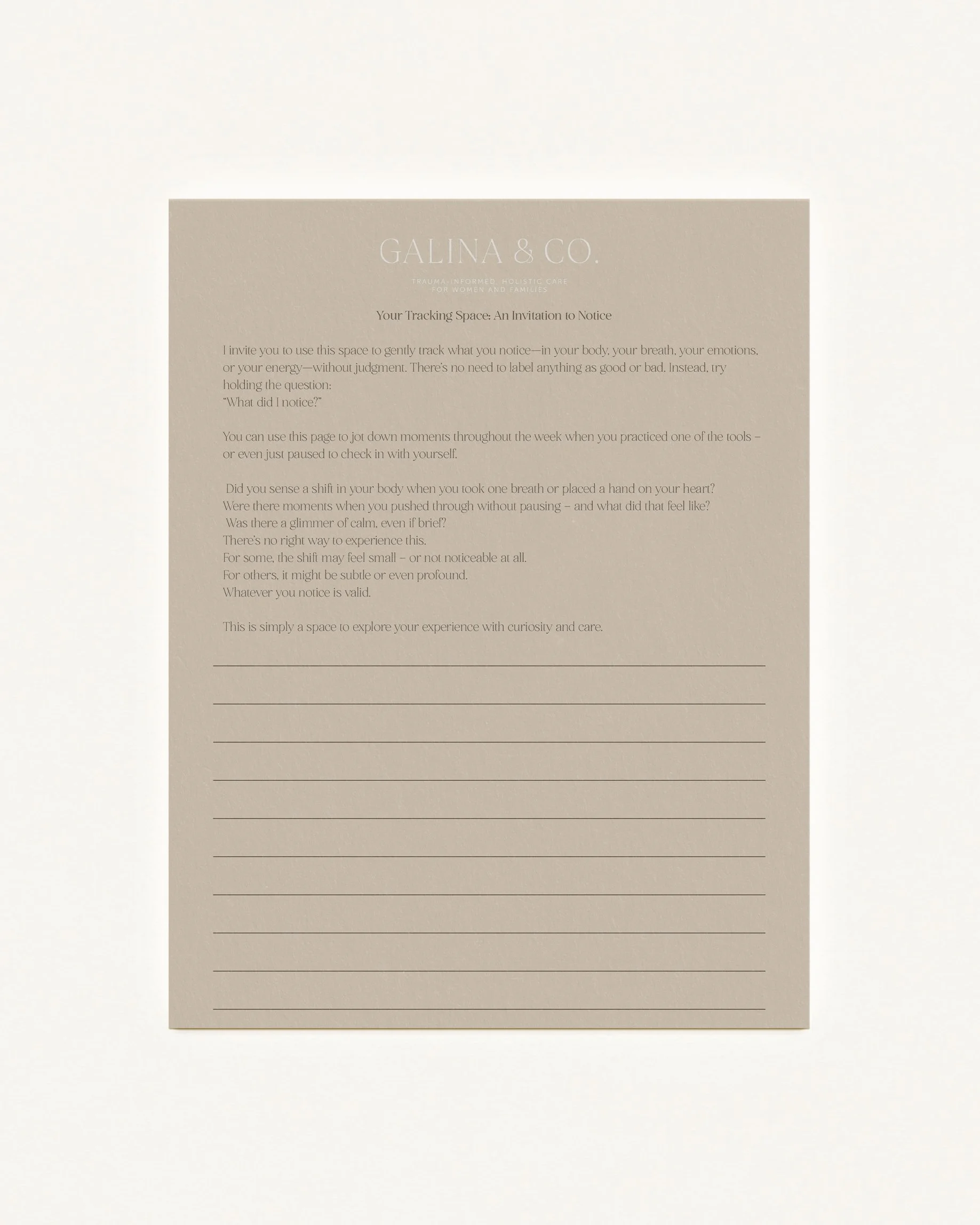 THE HEALING LIBRARY Categories: Select a Category Healing Workbook Free Resources Healing Workbook | Free Resources | Self-Regulation Tools | Tracking & Resourcing Through the body